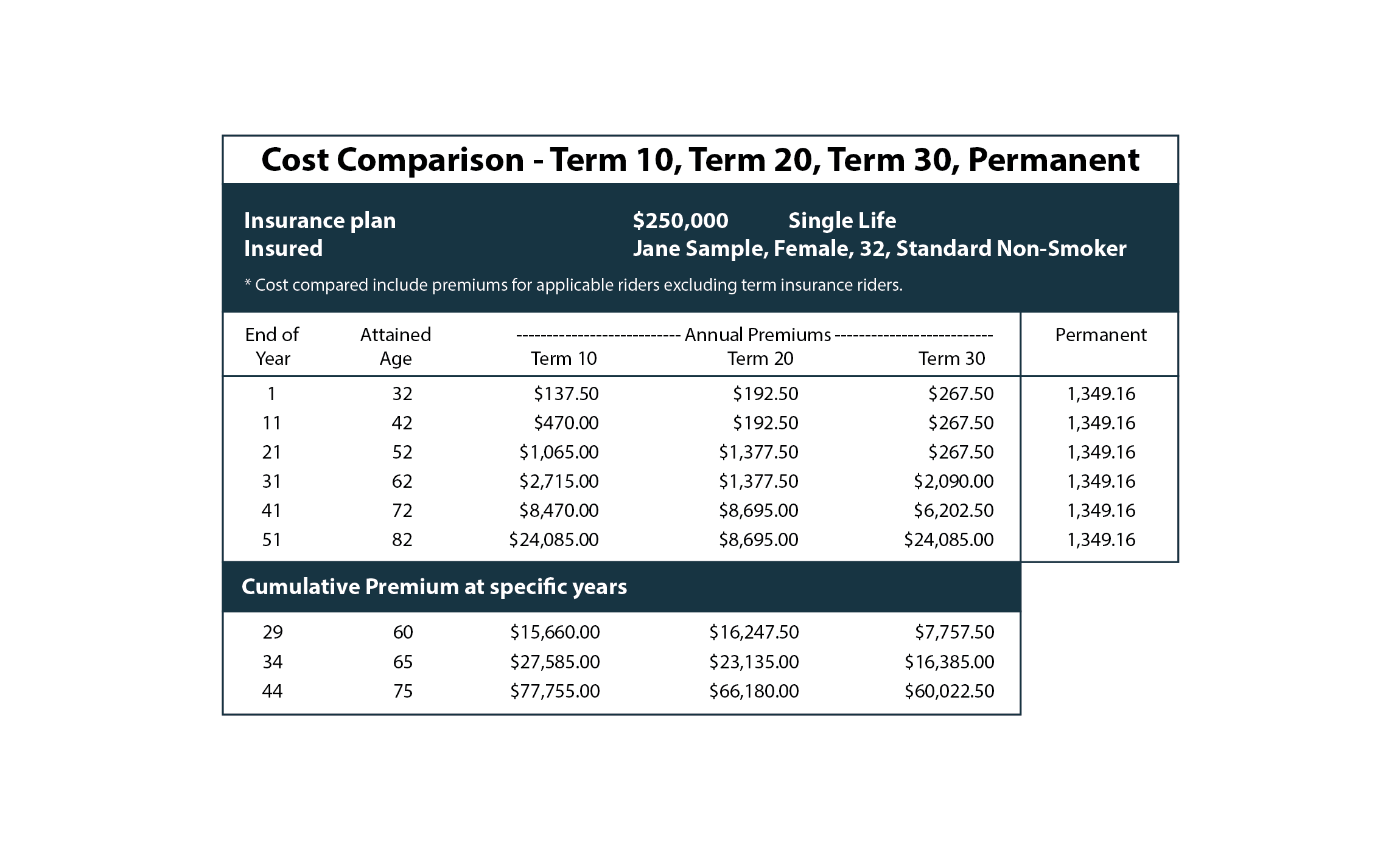 Question: What's the difference between Term 10 Life Insurance, Term 20 Life Insurance and Term 30 Life Insurance in terms of costs?