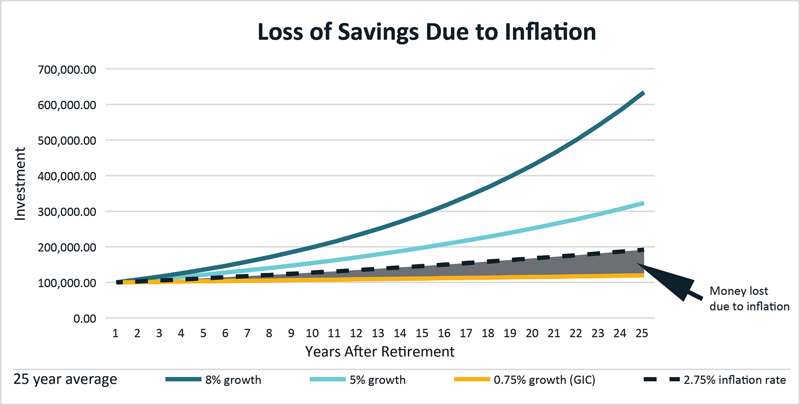 When we do our Financial Wellness Sessions for organizations we work with, we talk about the danger of having everything in very low-interest, “safe” investments like GICs. In today’s ultra-low interest rate environment, it’s very easy for inflation to outpace what you’re actually earning on investments – so over time your savings are actually worth less.