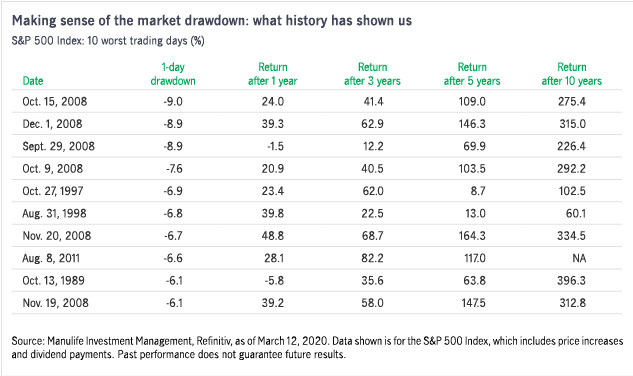 From Fidelity Investments – managers of our default investment in the Group RRSP, the Fidelity ClearPath series of investments. Staying investing during the Coronavirus market dip