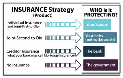 Individual Insurance is built to protect your spouse. If one of you dies, money goes to the survivor – to pay off your mortgage, clear your debts, help with the costs for raising kids, cover funeral costs, etc. Joint First to Die insurance is like that too – when one person dies, the other gets money.