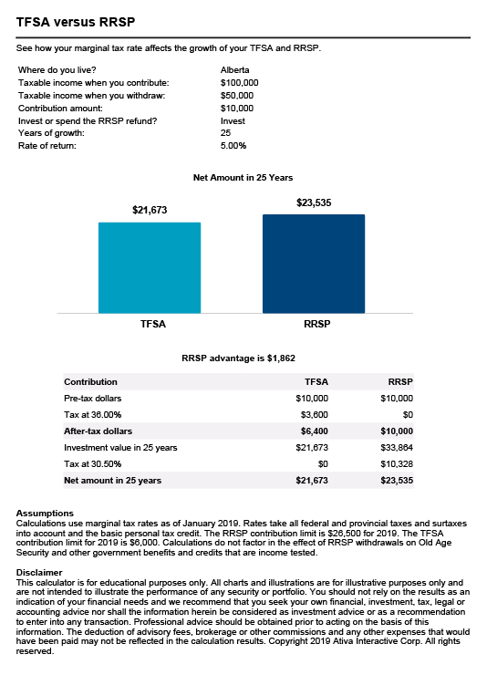… If you were to invest the same amount of money in the same investments, over time an RRSP can out-perform a TFSA – it generally gives people the chance to reduce their taxes in their highest income-earning years. Consider this example: