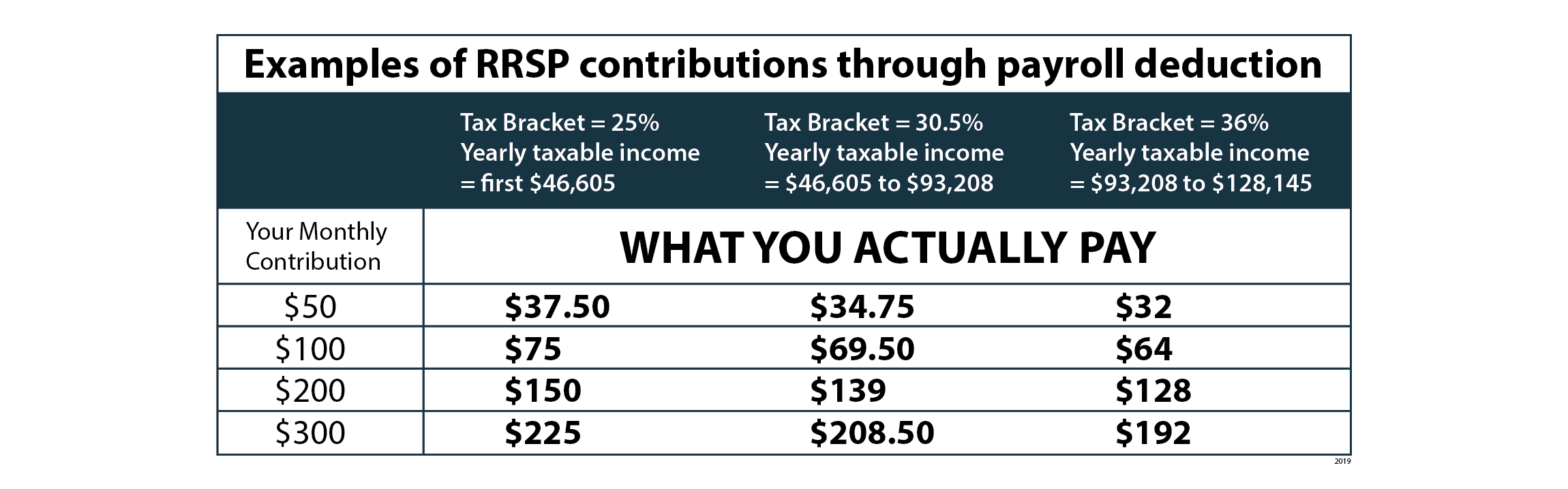 So how do you make sure you’re getting ahead? If you can put money into your RRSP through Payroll Deduction, you have a big advantage: you can set an amount every month that’s based on your budget – and unlike contributing at your bank, you get the savings back every month.